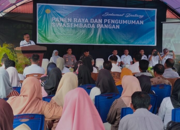 Panen raya dan sekaligus pengumuman swasembada pangan oleh Presiden RI ini disaksikan melalui Zoom Meeting yang digelar di halaman Kantor Kecamatan Kulisusu, Rabu (7/1).