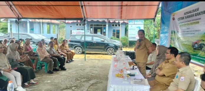 IKHTIARNUSANTARA.COM, BURANGA – Guna mendukung peningkatan produksi pangan dan kesejahteraan petani, Bupati Buton Utara (Butur) Afirudin Mathara resmi membuka sosialisasi program cetak sawah rakyat di Desa Eensumala, Kecamatan Bonegunu, Kabupaten Butur, Selasa (10/2).